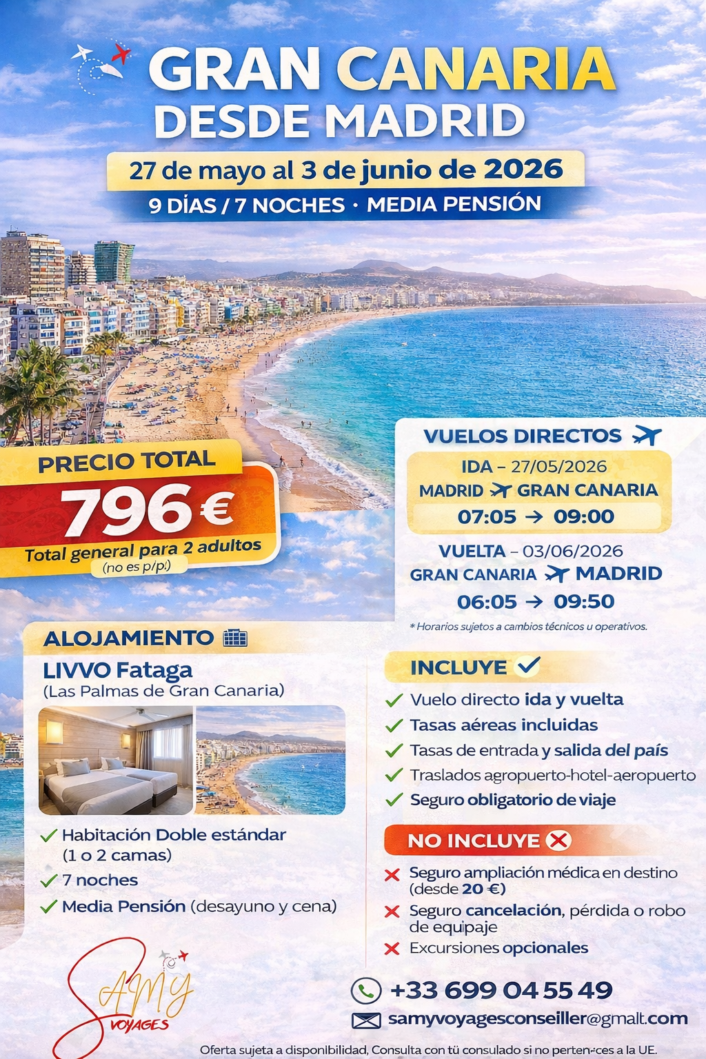 Escápate a Gran Canaria con vuelo directo desde Madrid y disfruta de una estancia cómoda, segura y perfectamente organizada.